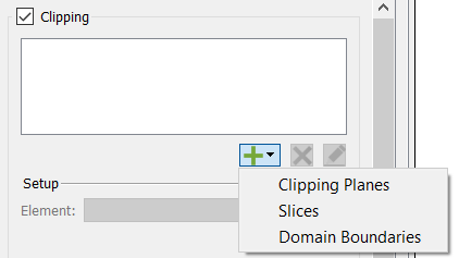 Note: You can define the planes, slices, or boundaries in the lower half of the Clipping Elements section.