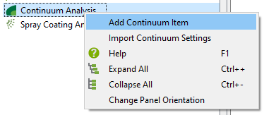 1. In the Analyst Tree, right-click Continuum Analysis and select Add Continuum Item.