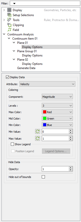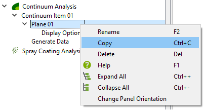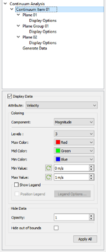 A Continuum Item is used to create and define Continuum planes, generate data, and view the results.