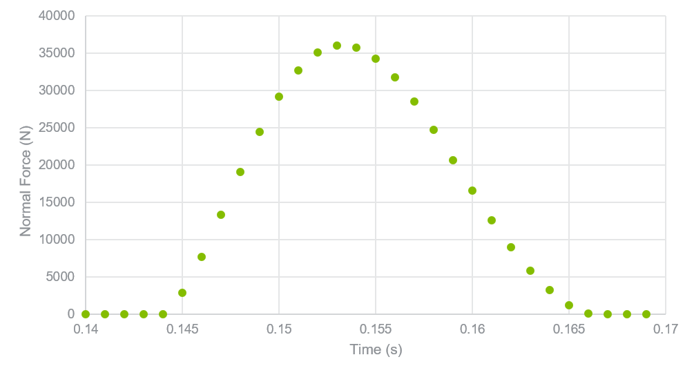 The following example shows a force-time graph for a single particle-geometry collision where each point is a contact.