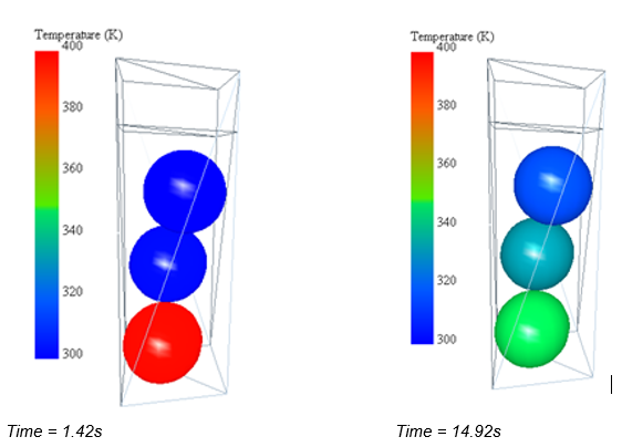 Model heat transfer through conduction between hot and cold particles
