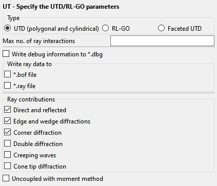 With this option the UTD parameters for UTD polygons and cylinders are specified.