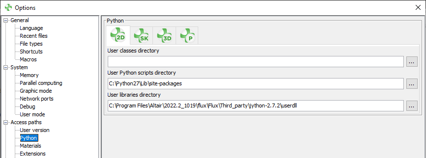 JyNI.jarin%INSTALLFLUX%\Third_party\jython-2.7.2\javalib, Flux requires access to theJyNI.dllin order to start. This is the reason why, in the Flux Supervisor, theuserdlldirectory must be configured for all modules (2D, 3D, Skew, PEEC) you want to use.It is understood this behaviour is not satisfying and should be improved in the future.