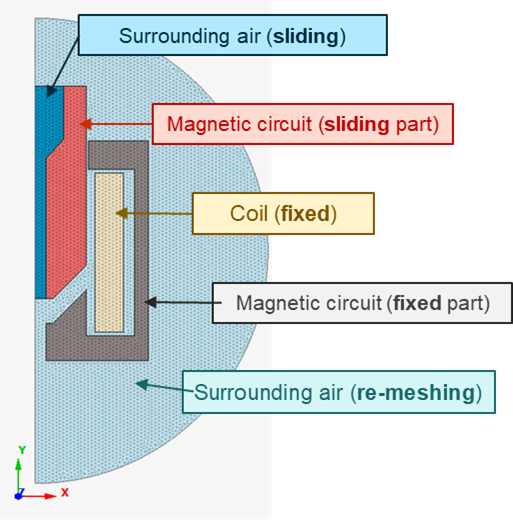 | 2D Axi Transient Magnetic | Actuator | The studied device includes the following elements: