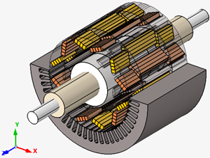 | 2D Magnetic AC | Induction MotorSummary | The studied device, an induction motor presented in the figure in the right, includes the following elements: