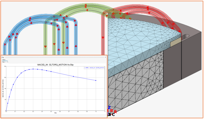 | 3D Magnetic AC | Induction Motor | This study is a parametrized magneto-harmonic analysis with values of rotor slip in order to evaluate the motor characteristics for rated load operation and display torque and current versus slip curves. | ![]() |