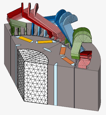 The 3D studied device, the Tesla Model 3's electric motor, includes