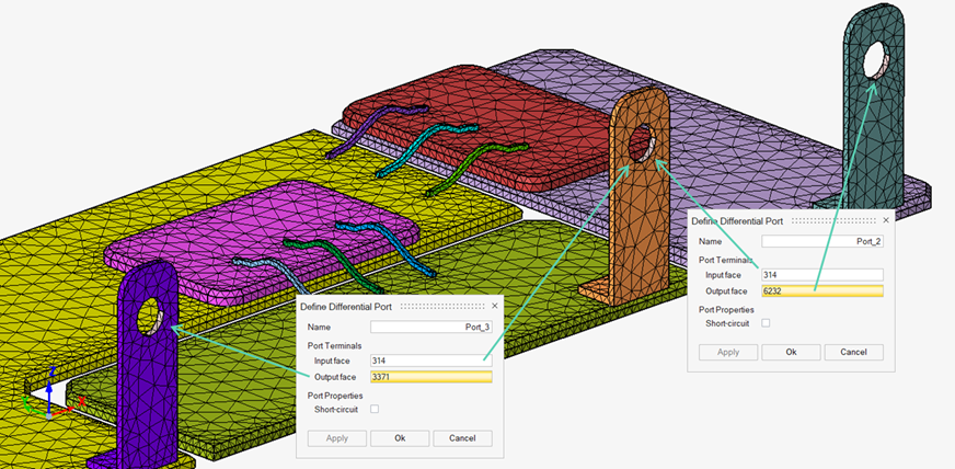 SimLab-EM provides a very convenient power module meshing tool and simple circuit connection method, as shown below: