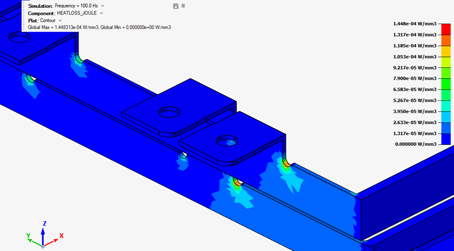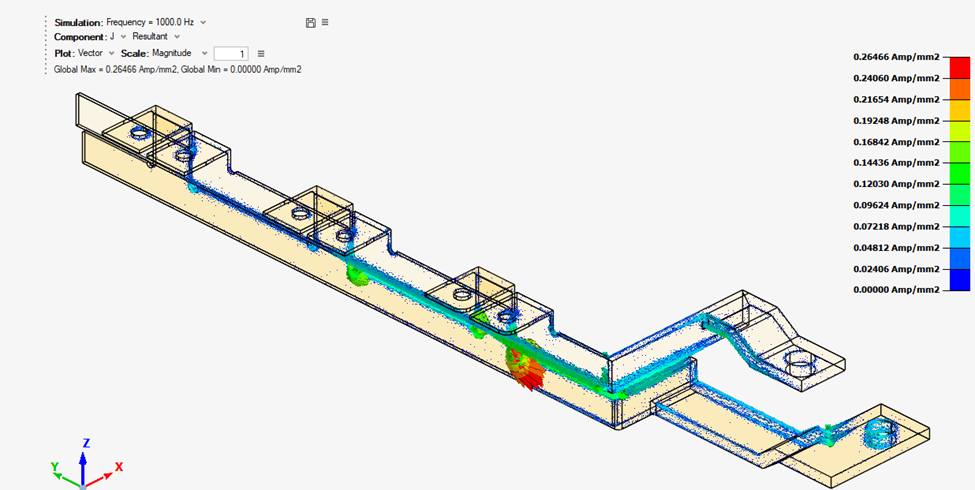 The electromagnetic analysis is performed in the frequency domain, by using the SimLab AC supplied conductor solution.