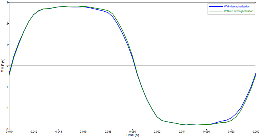 Furthermore, this model can consider demagnetization during solving, wherever the curve knee is, if the corresponding option is selected (Demagnetization during solving).