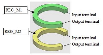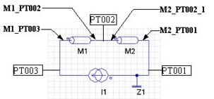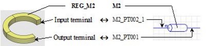 - he defines a geometric terminal for each electric terminal of the M2 component (M2_PT002_1, M2_PT001)