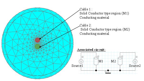 The example represents two cables, one supplied with sinusoidal voltage, the other with triangular voltage.
