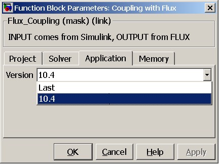 Permits to choose the Flux version to be coupled with Simulink during the solving process. The user has a choice between: