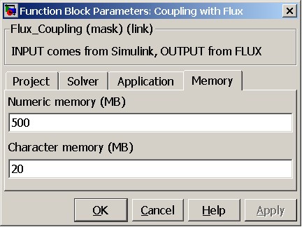 The new block «Coupling with Flux» available in Simulink has several properties which are classified in different tabs: