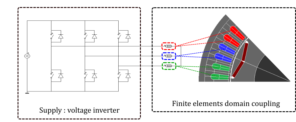 - Feed current to the coil, either by imposing the injection of a prescribed current value in the coil or by connecting it to an external circuit. These tasks are accomplished with the help of a FE coupling circuit component.