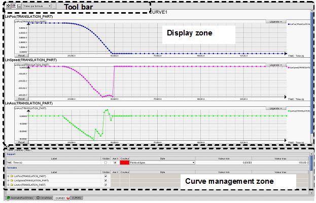 The display zone is the zone reserved to the various graphs of the elementary curves.