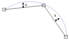 Note: * (d) is the distance between the center of the linear element and its projection on a curve. As long as the distance (d) is inferior to the deviation criterion expressed by the user, the software continues the cutting of the line into linear elements.
