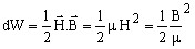 The volume density of the stored magnetic energy can be expressed by means of the vector quantities B and H in the relationship: