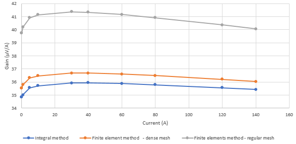 We can compute the gain for several values of current :Figure 4. Gain of the sensor