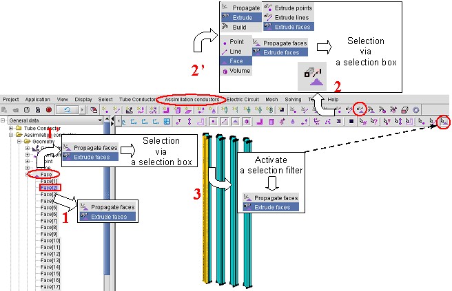 To activate the Extrude faces command, which requires data selection, choose one of the methods presented in the figure below: