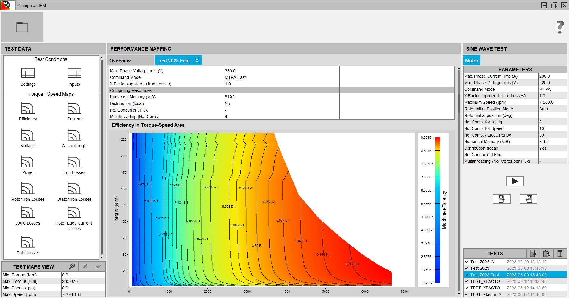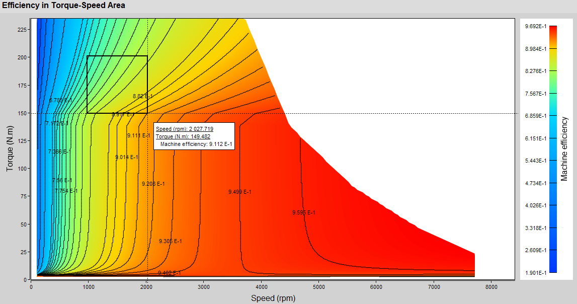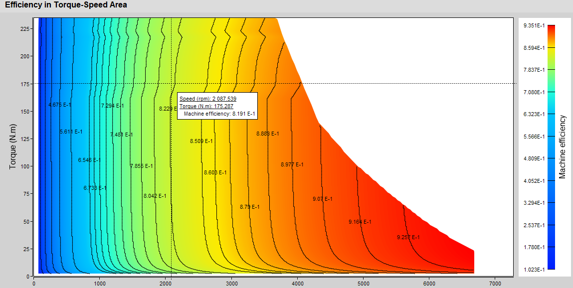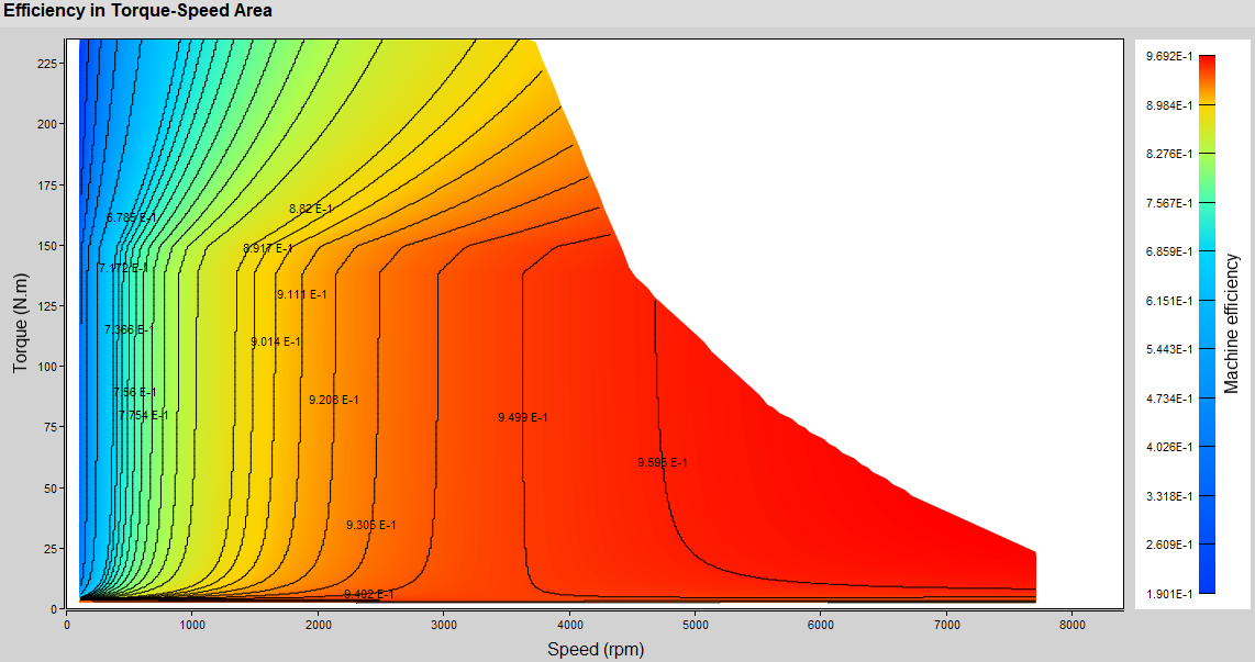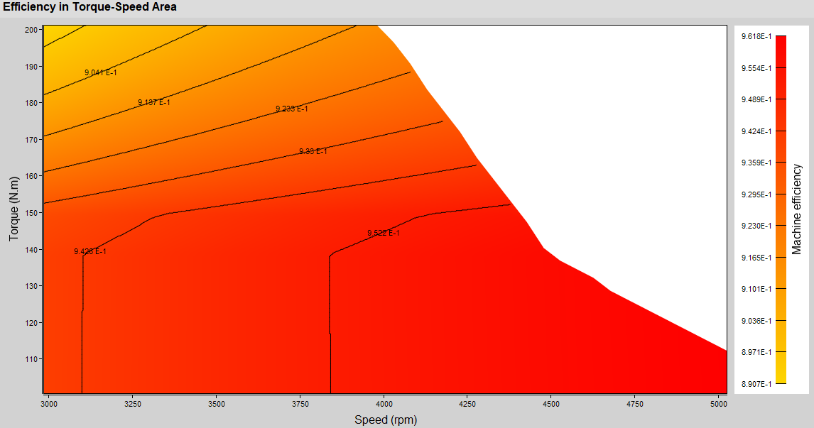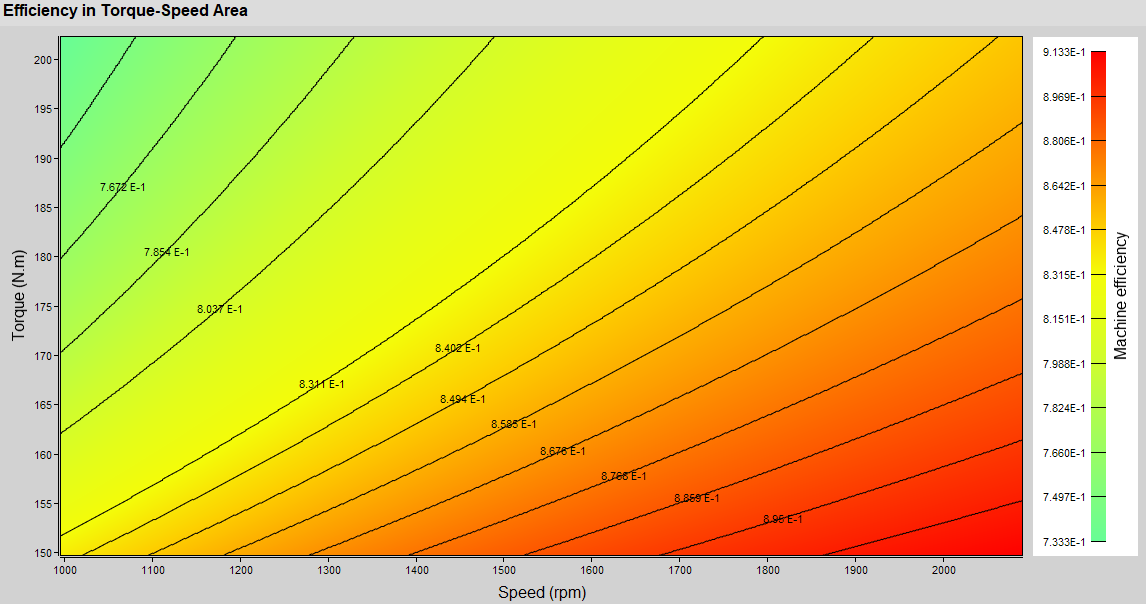 Several quantities are postprocessed in the Torque-Speed area: