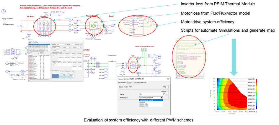 A new type of Export is available in FEMT: *.mat format to export Lookup tables for PSIM or Twin Activate Altair software.This allows you to create a System model of your complete drive systems including power electronics and your motor that is represented by an usual speed and current control Reduced Order Model that uses Look Up Table parameters (Flux_D, Flux_Q, inductances, ...).