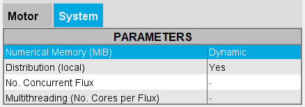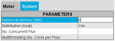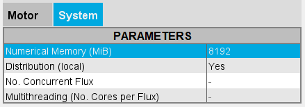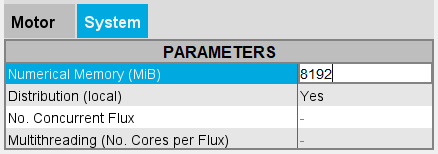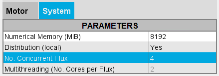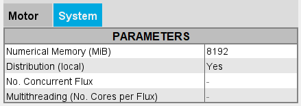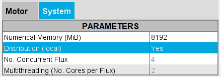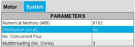 - If in the field Multithreading (No. Cores per Flux) there is no value, then this indicates that the distribution has not been activated in the Flux Supervisor. And so the solving will be sequential and not distributed even if the Distribution (local) is set to Yes.