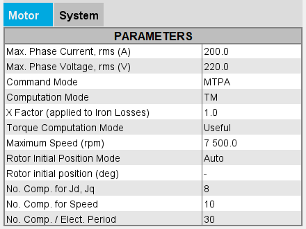 - It is not possible to modify the Number of computations for the speed, nor the Number of computations per electrical period. These two fields are disabled (grayed out).
