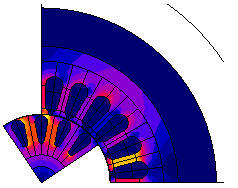 Computation conditions: A first Transient Magnetic computation is made, simulating the increase of the machine speed to the rated point (nnom = 1000 rpm). The second computation, initialized by the FE solutions of the first one goes back to the steady state regime.