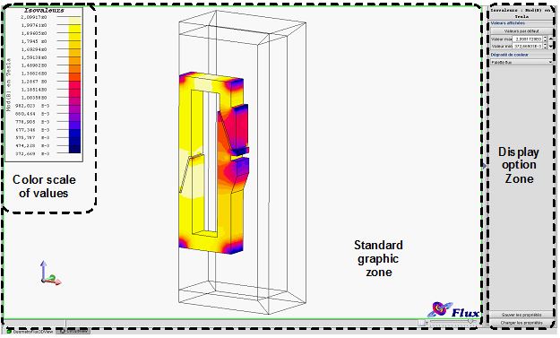 | Standard graphic zone | Zone comprising the geometric view of the device with the displaying of the calculated isovalues and isolines. |
