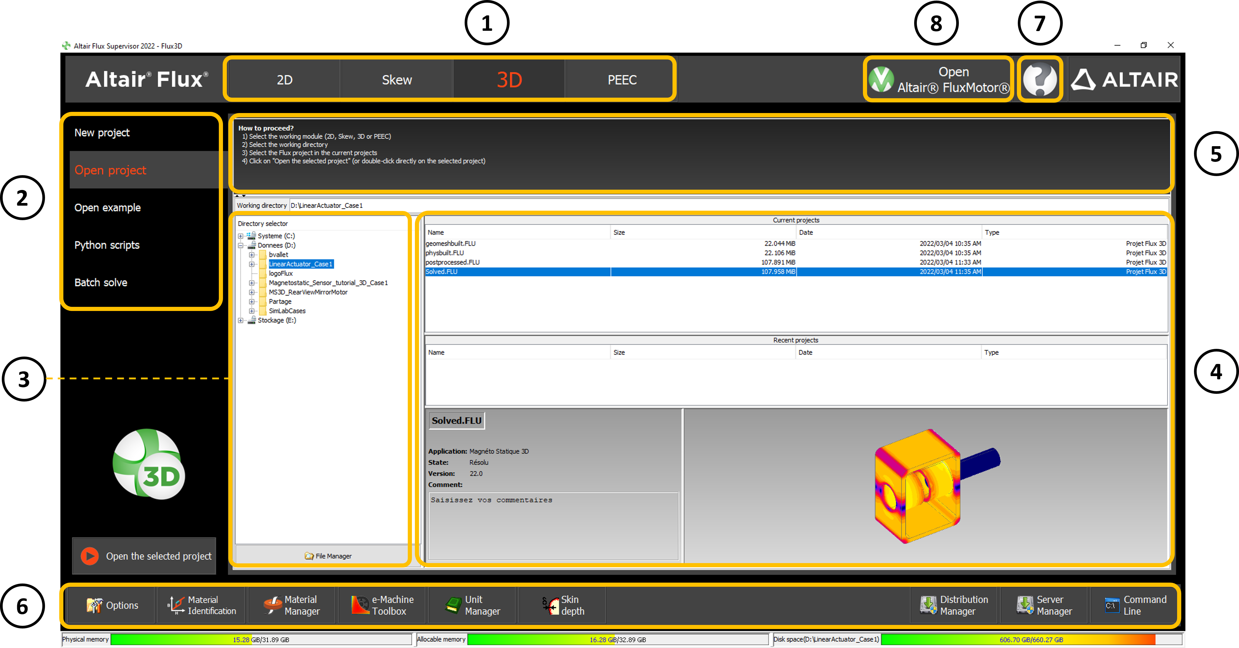 | 8: Altair® FluxMotor® | This button allows opening FluxMotor supervisor |