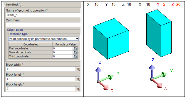 • With the modeler, geometric parameters are used in geometric operations of the modeler (dimensions of a block, radius of a cylinder, distance of a chamfer, length of extrusion, …)