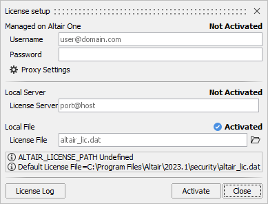 It is possible to obtain information in particular on the environment variable ALTAIR_LICENSE_PATH.- If ALTAIR_LICENSE_PATH is not present, then this information will be displayed.