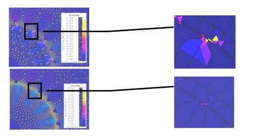 Pictures below show how the error is displayed for 2D applications. You can notice that with the same scale, the error decreases thanks to the mesh density.
