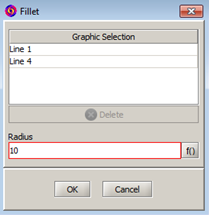 After the activation of this mode, a dialog box containing all the necessary fields and options to apply a fillet will appear.