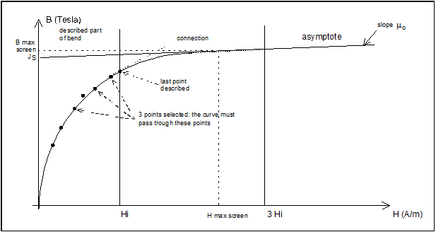 In the standard spline mode, the curve B(H) is defined by the assembly of points entered by the user.