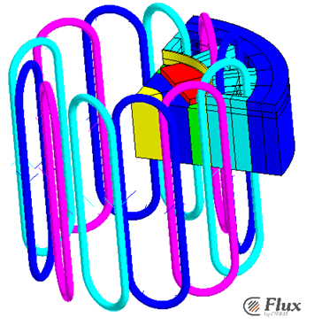 As output, Flux creates the machine with: periodicity, symmetry, mesh, winding, mechanical sets and volume regions