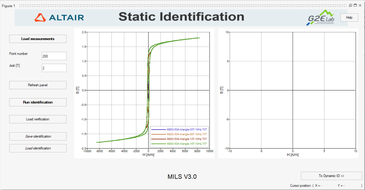 reaching a different magnetic flux density (until saturation).Note: The static hysteresis loop measurement files are text files that follow a specific format. A detailed description of MILS's input formats is available here.Note: If the files are loaded correctly, MILS will display the measurements provided by the user in the Curves preview window, as shown in Figure 2.