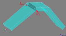 To this aim, within the context of import of the CAD files, the user can lean on a cut plane. On the other hand, if he works in the standard graphic zone of Flux PEEC, he must define two supplementary lines A and B in the left image below, in order to create the intermediate face, marked in dark turquoise in the image below.