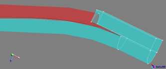The volume referred to in the left image below has two changes of direction. As the first angle is too acute, the Geometric Tubes (colored in red in the right figure) created to approximate the shape of the volume are to a large extent at the outside of the volume.