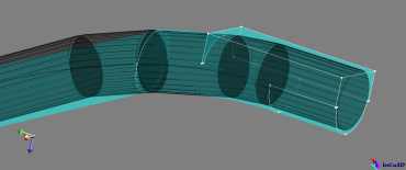 By launching the algorithm in two stages, one for each of the two volumes thus obtained, the Geometric Tubes marked in black in the image below are created to approximate the wire bonding.