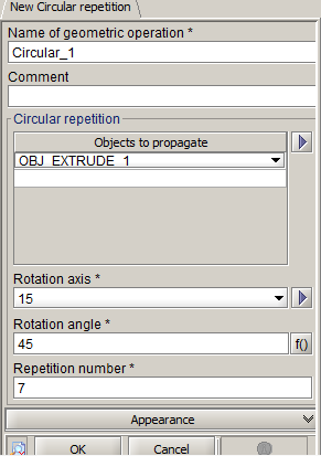 By means of an example, here are the geometric operations and the objects that are created during an operation of circular repetition of objects.