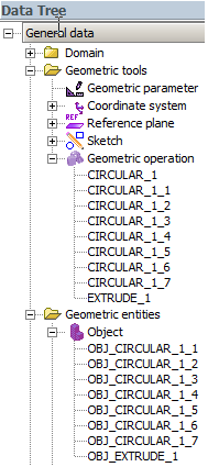• As many geometric operations as the objects repeated CIRCULAR_1_1, CIRCULAR_1_2… (it permits to isolate each object duplicated and to use them independently then).