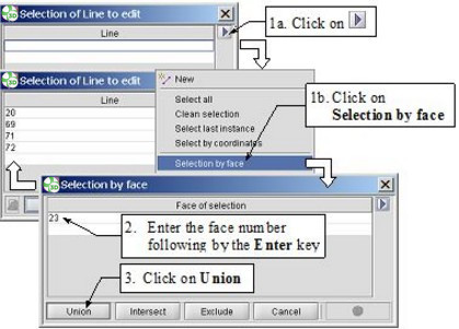 Thus, it is possible to select all the lines bordering a face by selecting this face, or all faces bordering a volume by selecting this volume.