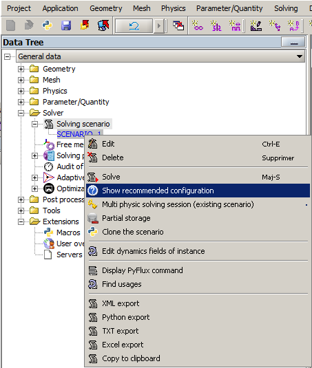 Flux can provide recommendations for settings related to the resolution of a scenario (e.g., solver configuration, number of cores and parametric distribution settings). This information may be used to improve the resolution of a Flux project, by optimizing the use of the available hardware and by reducing the total computation time.