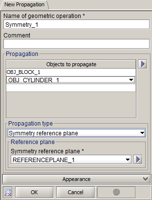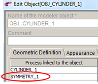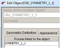 • The addition of the geometric operation SYMMETRY _1 in the list of geometric operations of each of origin objects