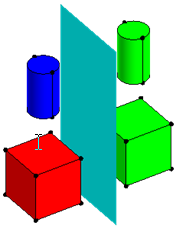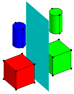 Studied example: symmetry of a block and a cylinder in relation with a reference plane