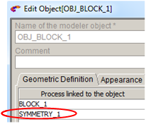 • As many geometric operations as the objects to turn symmetric SYMMETRY_1_1, SYMMETRY_1_2… (it permits to isolate each object turned symmetric and to use them independently then).