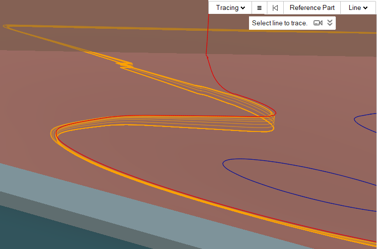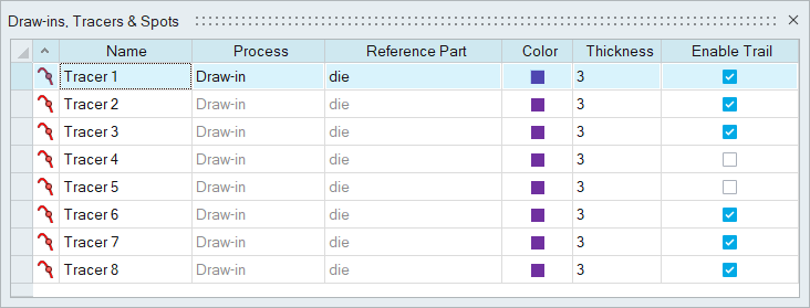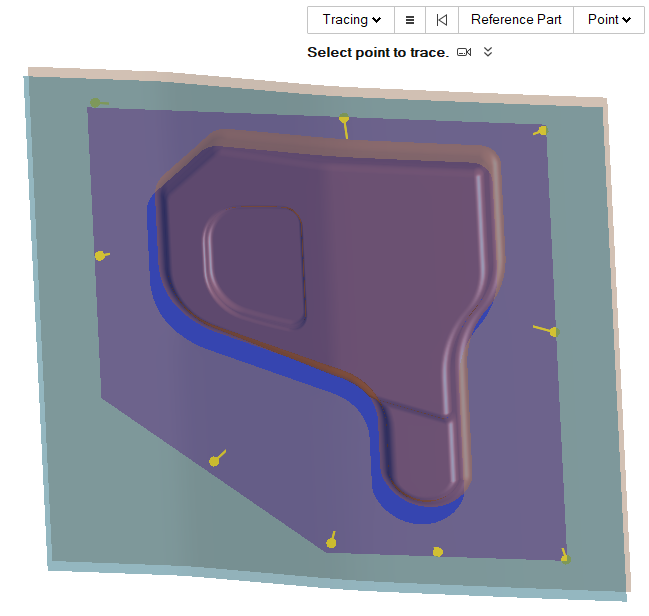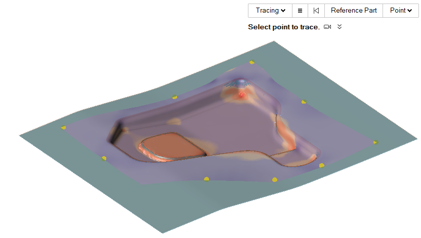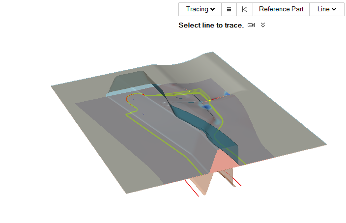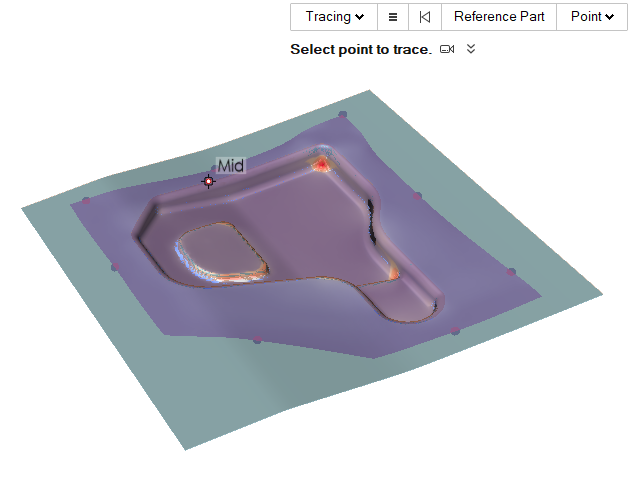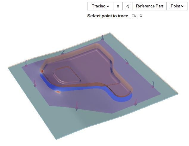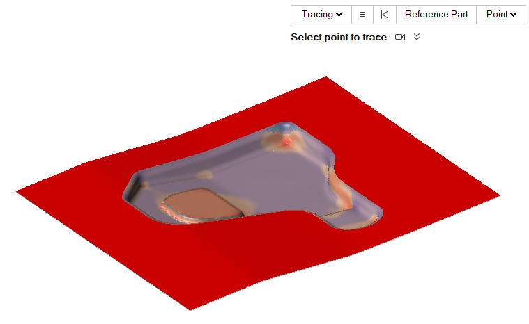 Choose points, lines, or edges to measure how the forming process changes the blank. Tracers are useful to determine the best sized blank and understand how the material flows during the forming process.