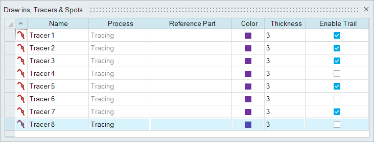 - Tracers can be hidden or shown by clicking their icons in the Model browser or by using the context menu.